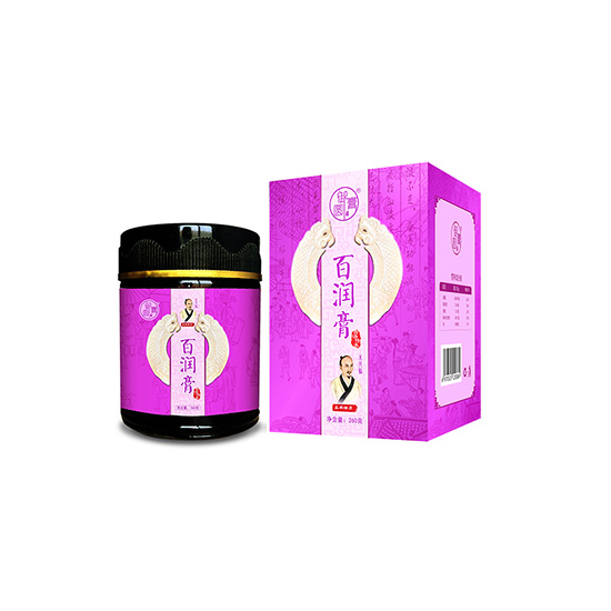 產品描述:【品名】百潤膏【類別】方便食品【配料】大棗、龍眼肉、核桃仁、蓮子、枸杞子、黃精、人參(人工種植)、蛹蟲草、阿膠、蜂蜜。【食用限量】人參(人工種植)食用限量3g/天。【凈含量】260克【建議食用方法和食用量】每日1-2次,每次10g-20g,用開水沖調