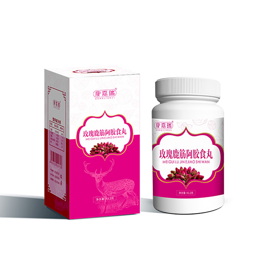 產品描述:【品名】玫瑰鹿筋阿膠食丸【類別】方便食品【配料】玫瑰花(重瓣紅玫瑰)、養殖梅花鹿鹿筋、阿膠、山藥、枸杞子、桑 椹、人參(人工種植五年以下)