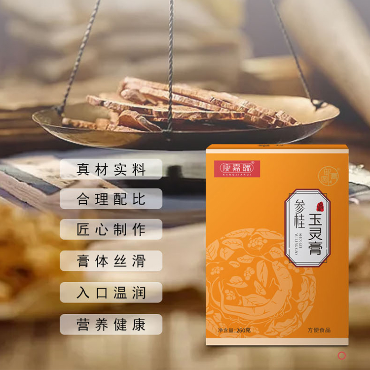 產品描述:參桂玉靈膏的配料:桂圓肉、人參(人工種植5年及5年以下)、百合、茯苓、桑葚、玉竹、酸棗仁、木糖醇。 是一款女性頤養麗人的友情之品,與傳統玉靈膏有一定區別,切勿混淆!