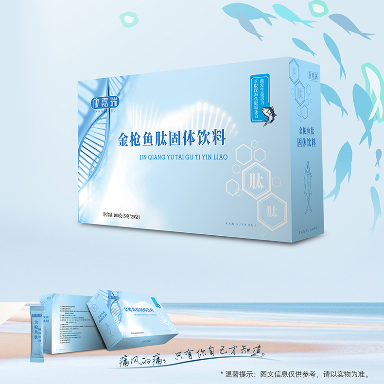 產品描述:【產品名稱】金槍魚肽固體飲料【產品類別】固體飲料 【配料表】金槍魚肽(鵝肌肽)、葵花盤粉、葡萄籽粉、櫻桃粉、芹菜籽粉、麥芽糊精、殼寡糖【凈含量】100克(5克/袋20袋)【不適宜人群】嬰幼兒,兒童、孕婦以及哺乳期婦女。【食用方法】一天一次,一次一袋,加入150-200毫升溫開水沖飲,早晨一杯或晚上一杯。【保質期】24個月【注意事項】沖調后如有少許沉淀物屬正常現(xiàn)象、并無質量問題請放心飲用。【貯藏方法